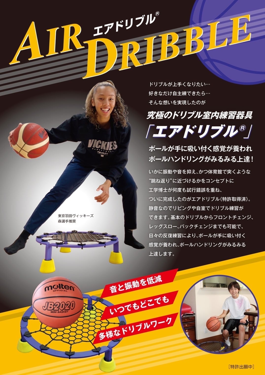 エアドリブルは、室内で静かにドリブル練習をするために開発され、日本で初めて特許を取得した画期的な商品です。静音、低振動なので音を気にせず、いつでもどこでも好きなだけ練習が可能になる画期的な商品です。